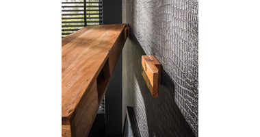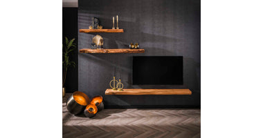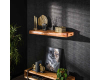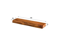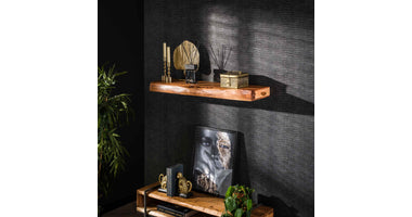 Deze trendy wandplank Hemsbach is gemaakt van acaciahout. De plank wordt door middel van 2 houten blokjes aan de wand gemonteerd (zie afbeelding). Deze wandplank is 100 cm en is ook in 150 en 200 cm lengte te leveren. Je kunt natuurlijk ook op heel speelse wijze de 3 wandplanken combineren. Zie foto als voorbeeld.