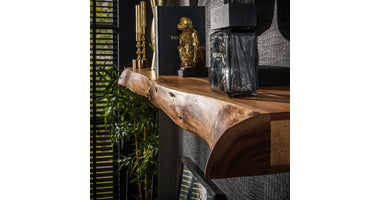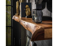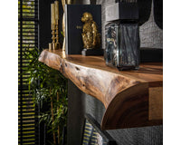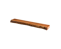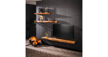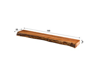 Deze trendy wandplank Hemsbach is gemaakt van acaciahout. De plank wordt door middel van 2 houten blokjes aan de wand gemonteerd (zie afbeelding). Deze wandplank is 150 cm en is ook in 100 en 200 cm lengte te leveren. Je kunt natuurlijk ook op heel speelse wijze de 3 wandplanken combineren. Zie foto als voorbeeld.