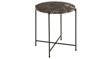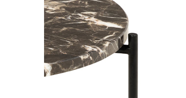 Bijzettafel Hou Ø42 cm met bruin marmer blad