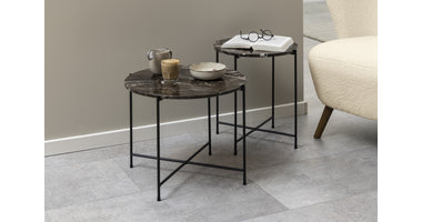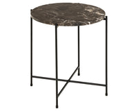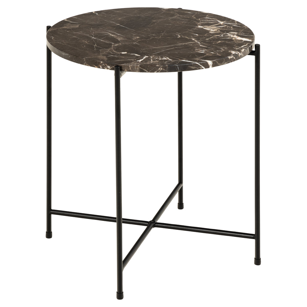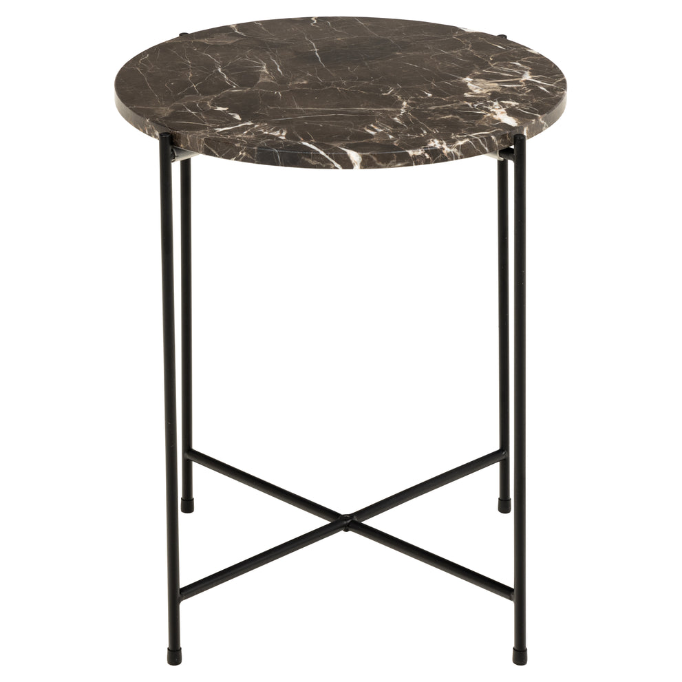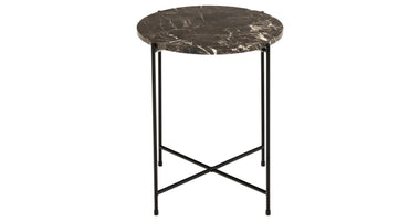 Ze zijn misschien klein, maar bijzettafels spelen nog steeds een grote rol in veel huizen. En deze bijzettafel Hou zal niet gemakkelijk over het hoofd worden gezien. Deze bijzettafel Hou is gemaakt van marmersteen en is een stijlvolle bankgenoot. Het ronde blad staat op een slanke, ruwe metalen basis met poedercoating en gekruiste details.