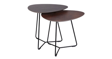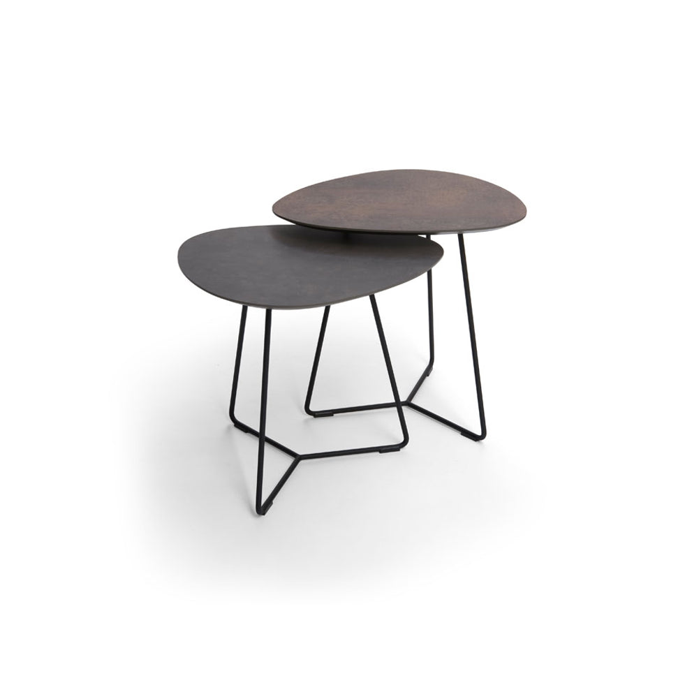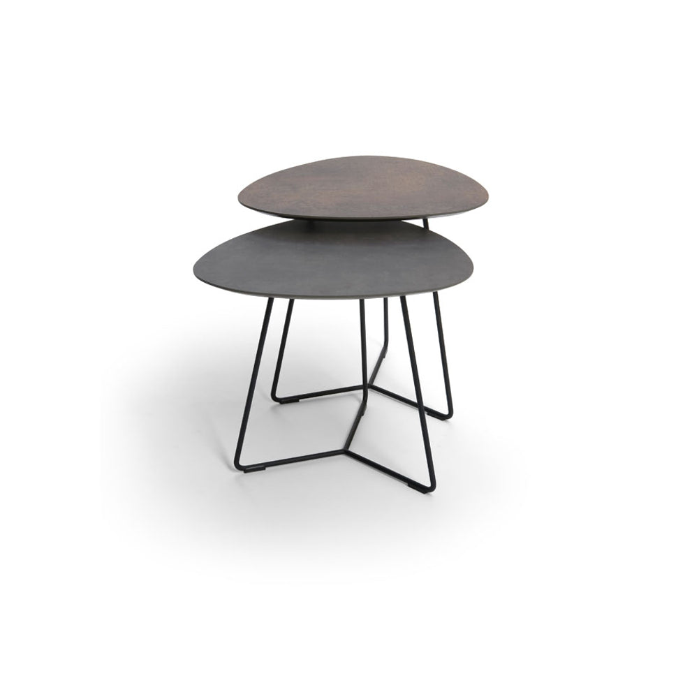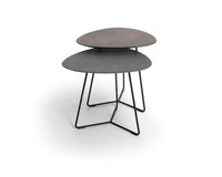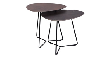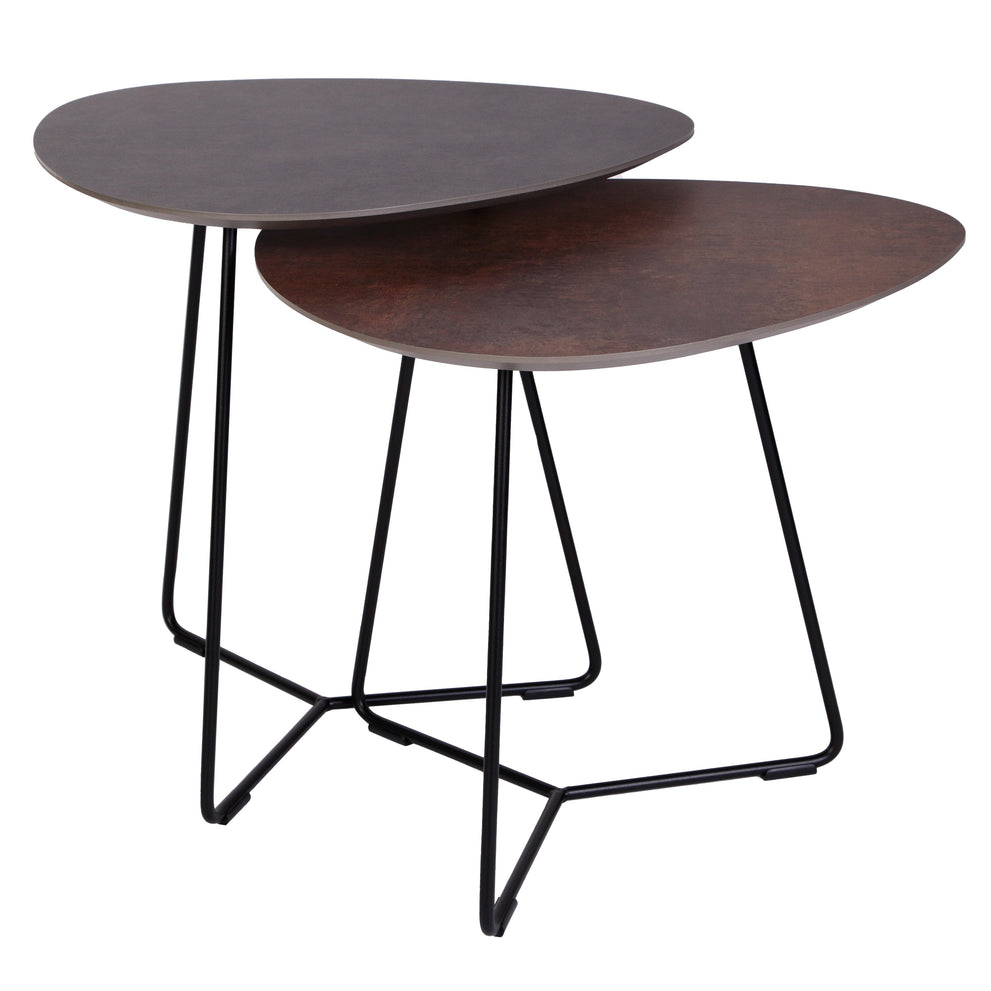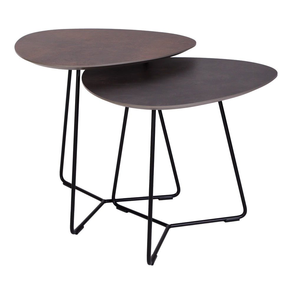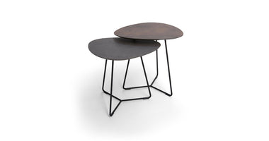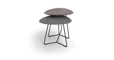 De Twinny set van 2 bijzettafels passen prima in iedere moderne huiskamer. De ruime, eivormige bladen bieden voldoende plek voor een flinke bos bloemen of schalen met lekkere hapjes. Je zet ze los van elkaar neer of als set onder elkaar geschoven.