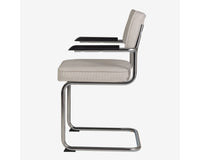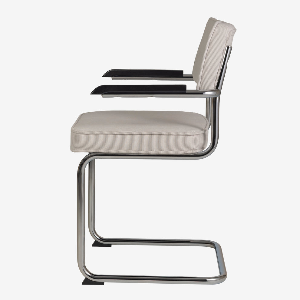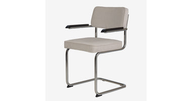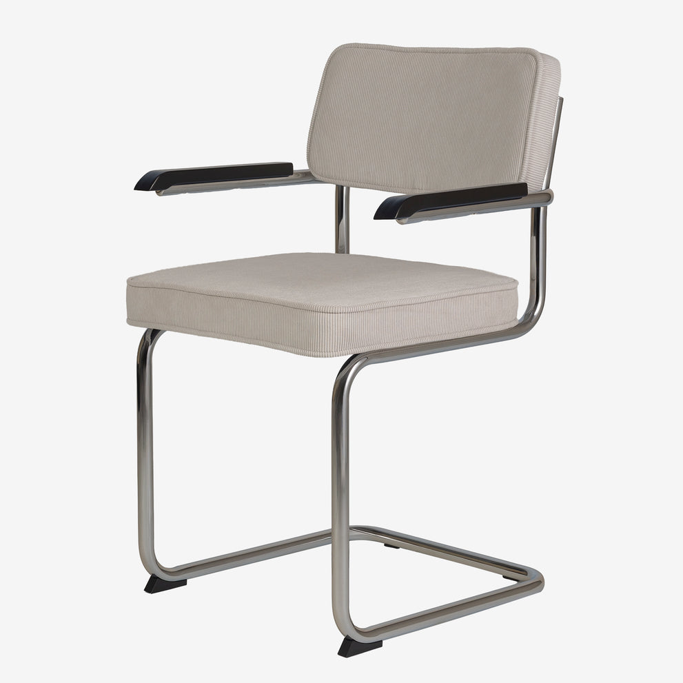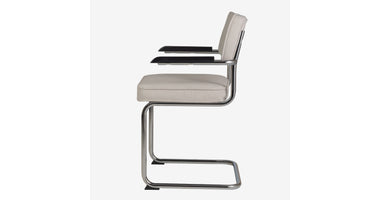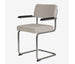 Eindelijk komt ie weer !! Onze bekende buisframe stoel Brovst MET armleuning. De armleuning is gemaakt van hout en is zwart gelakt. Stoel is identiek aan de stoel zonder arm behalve dat ie door de armleuning iets breder wordt.