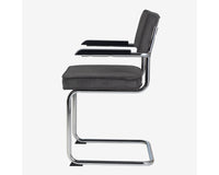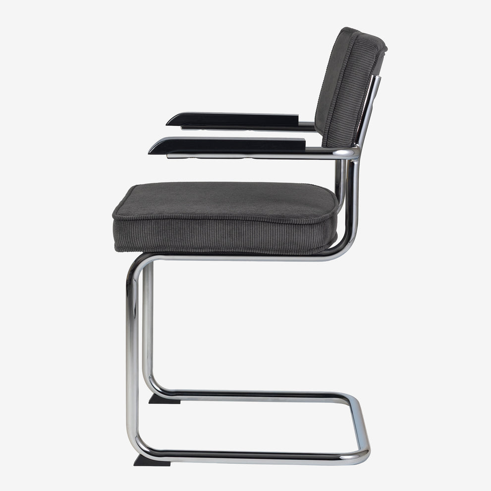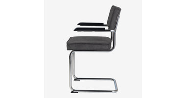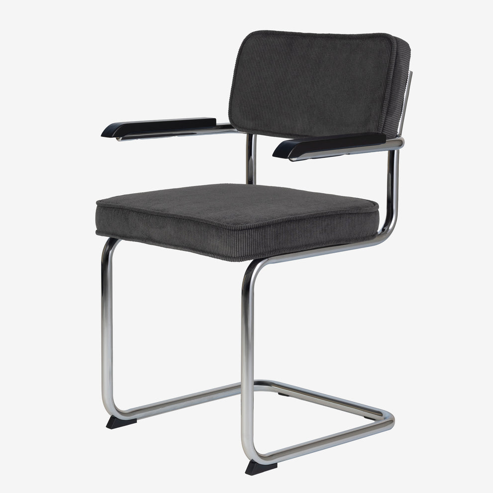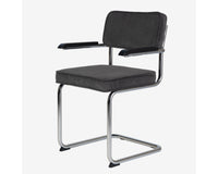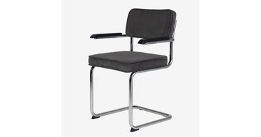 Eindelijk komt ie weer !! Onze bekende buisframe stoel Brovst MET armleuning. De armleuning is gemaakt van hout en is zwart gelakt. Stoel is identiek aan de stoel zonder arm behalve dat ie door de armleuning iets breder wordt.