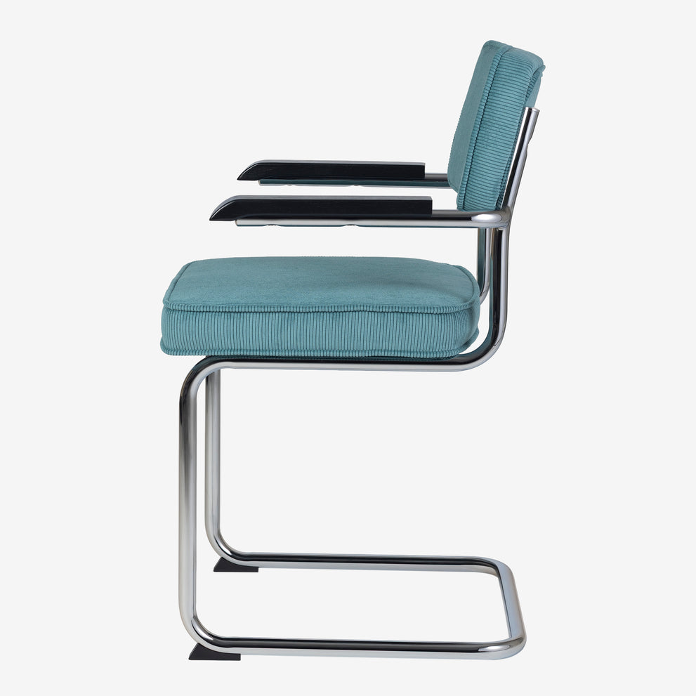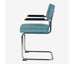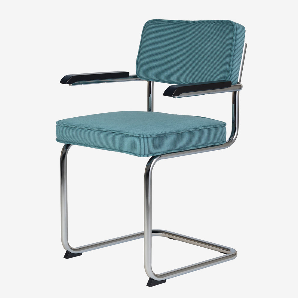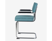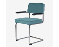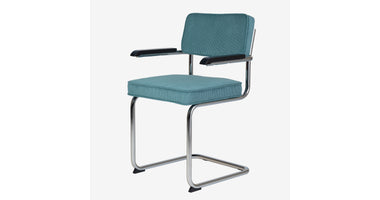 Eindelijk komt ie weer !! Onze bekende buisframe stoel Brovst MET armleuning. De armleuning is gemaakt van hout en is zwart gelakt. Stoel is identiek aan de stoel zonder arm behalve dat ie door de armleuning iets breder wordt.