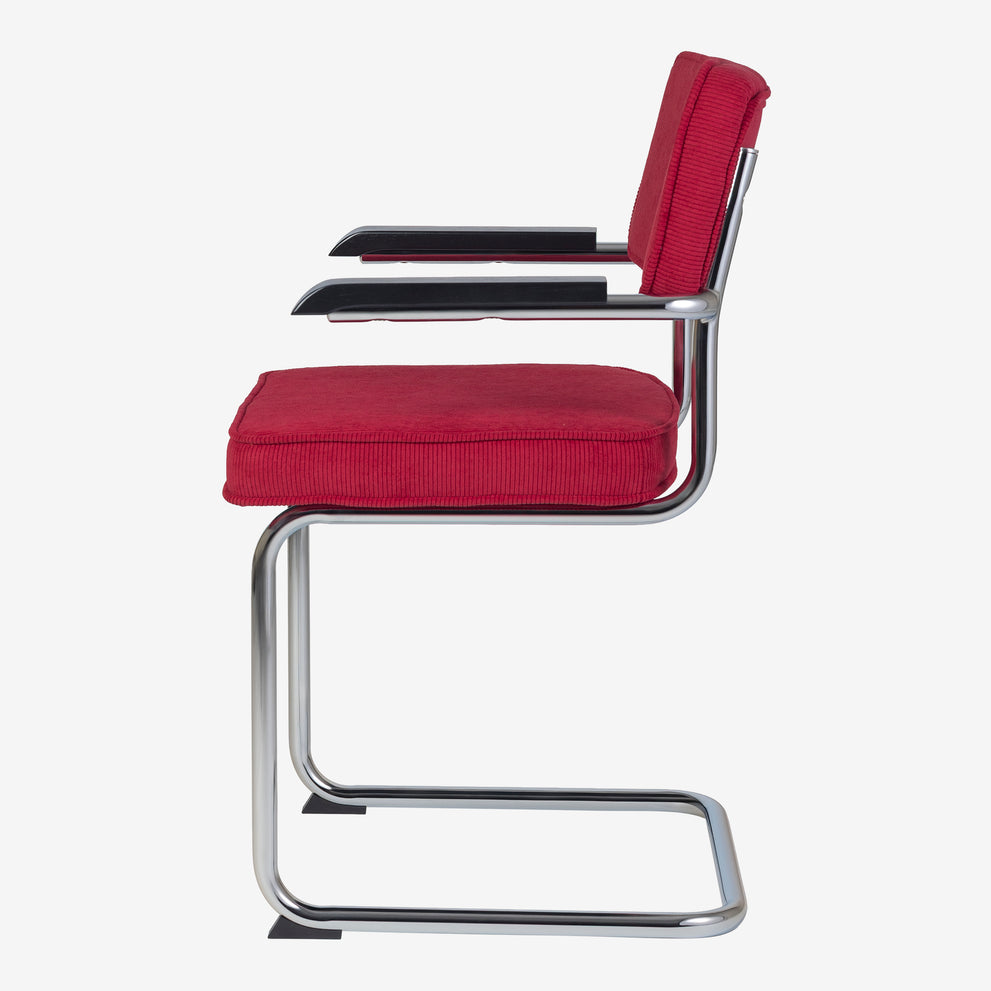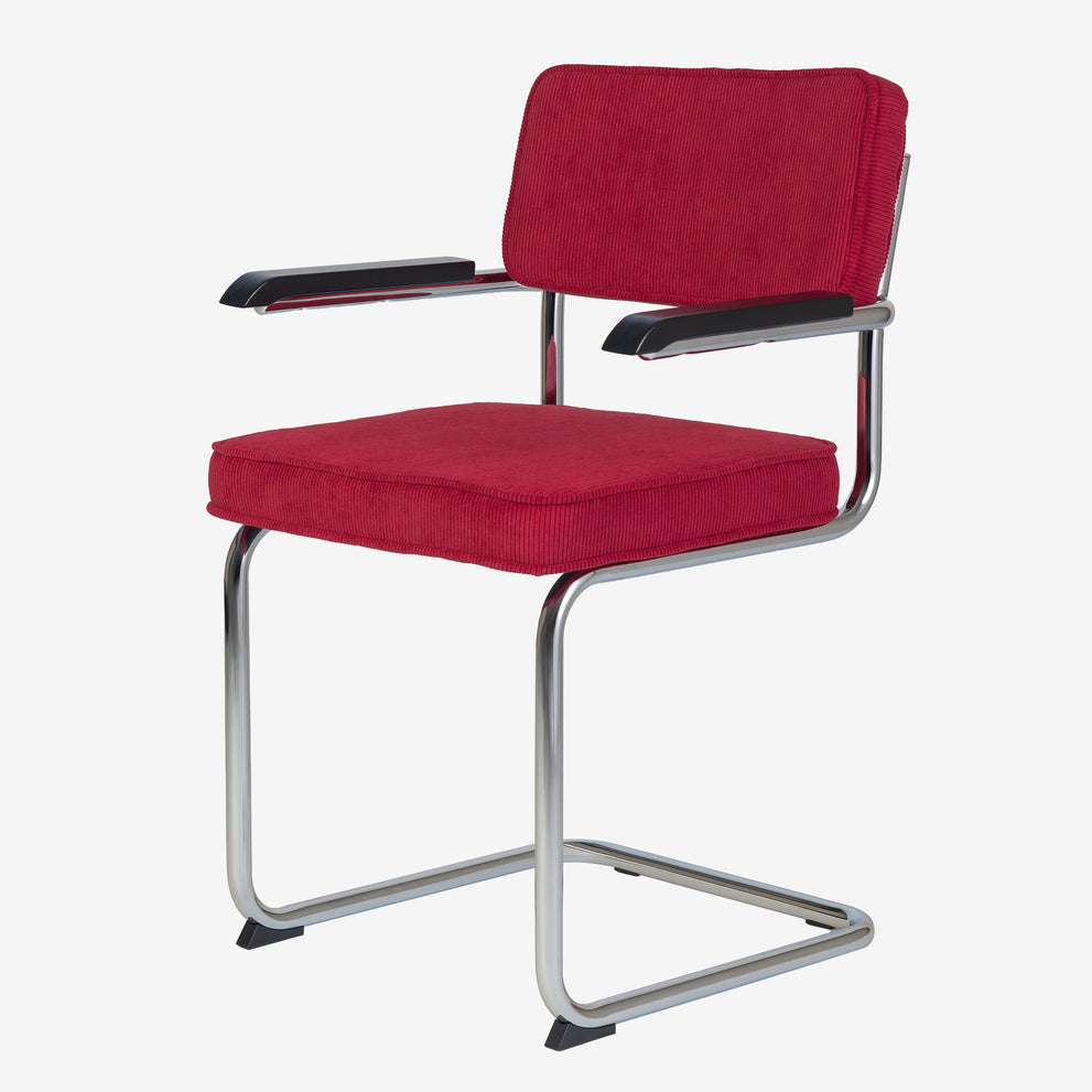 Eindelijk komt ie weer !! Onze bekende buisframe stoel Brovst MET armleuning. De armleuning is gemaakt van hout en is zwart gelakt. Stoel is identiek aan de stoel zonder arm behalve dat ie door de armleuning iets breder wordt.