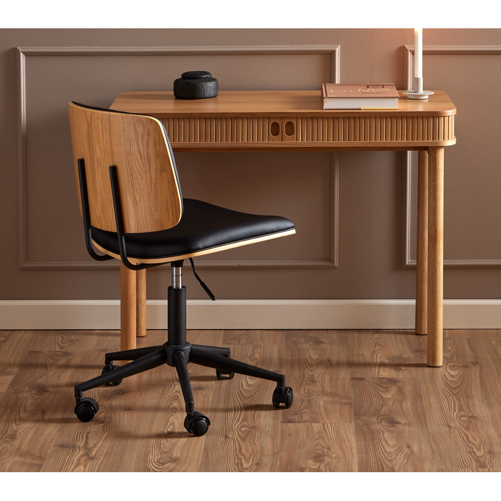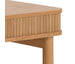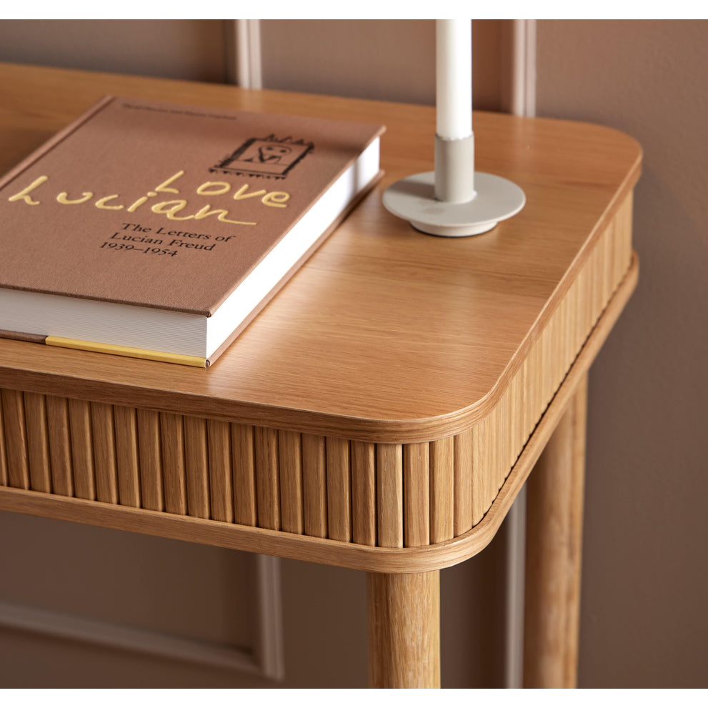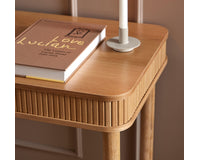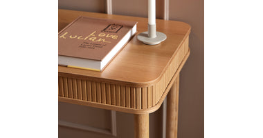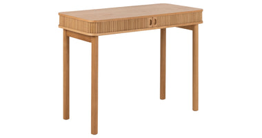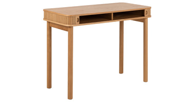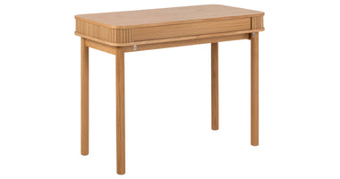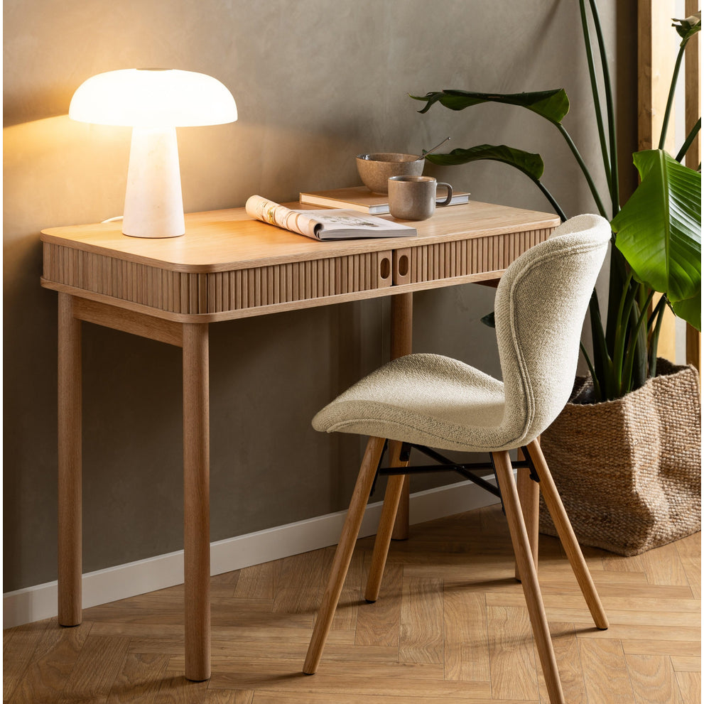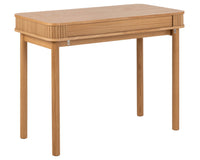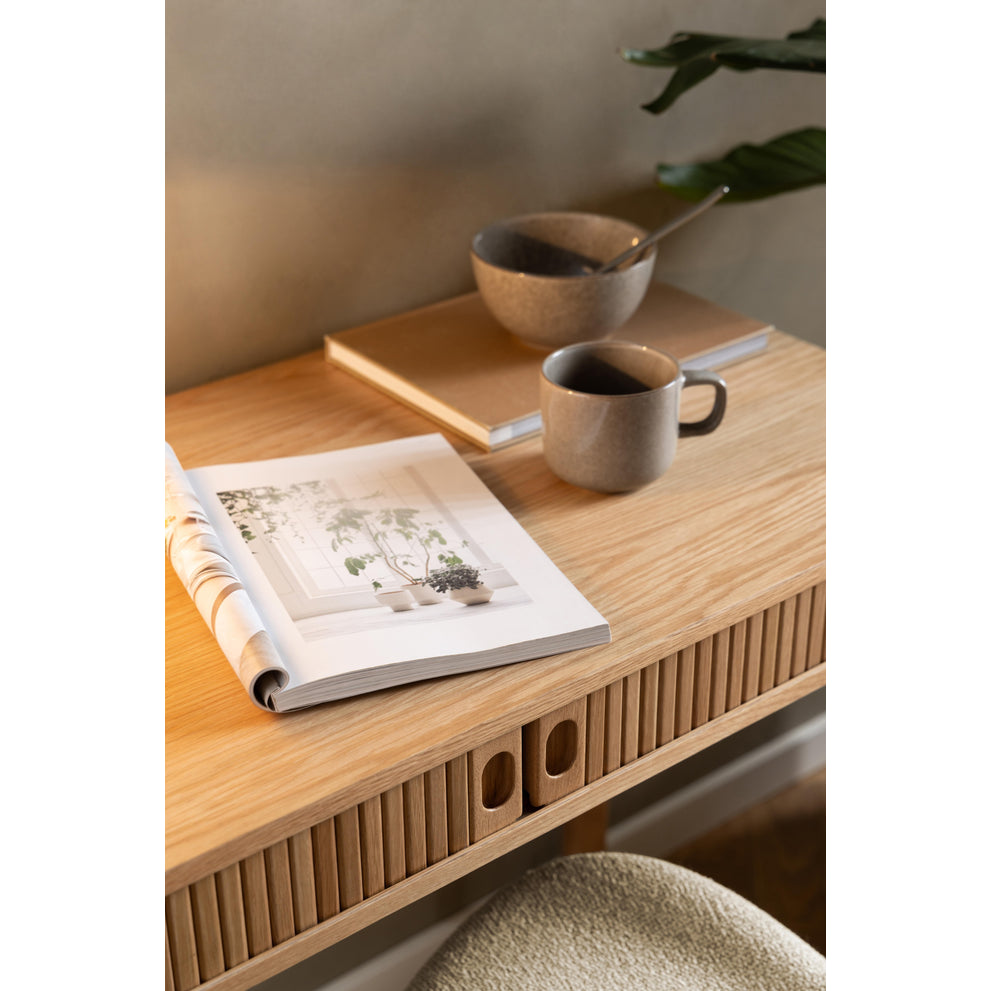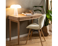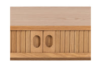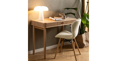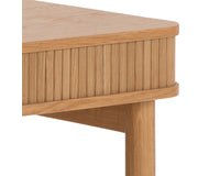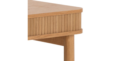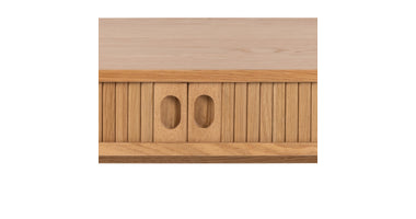 De meubelen van de serie Jels zijn gemaakt van eiken fineer hout. Uitgevoerd in de kleur naturel , en de hoeken van alle meubelen zijn mooi afgerond.  Alle kasten en tafels hebben een soort roldeur gemaakt van lamellen/latjes. De serie Jels bestaat uit een nachtkastje, groot dressoir, klein dressoir, hoge bergkast, salontafel , bureau en een TV dressoir. Prachtig met elkaar te combineren in je woonkamer.