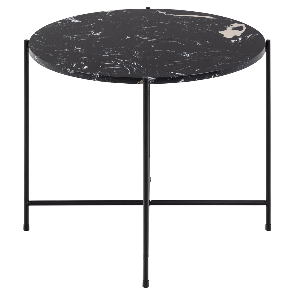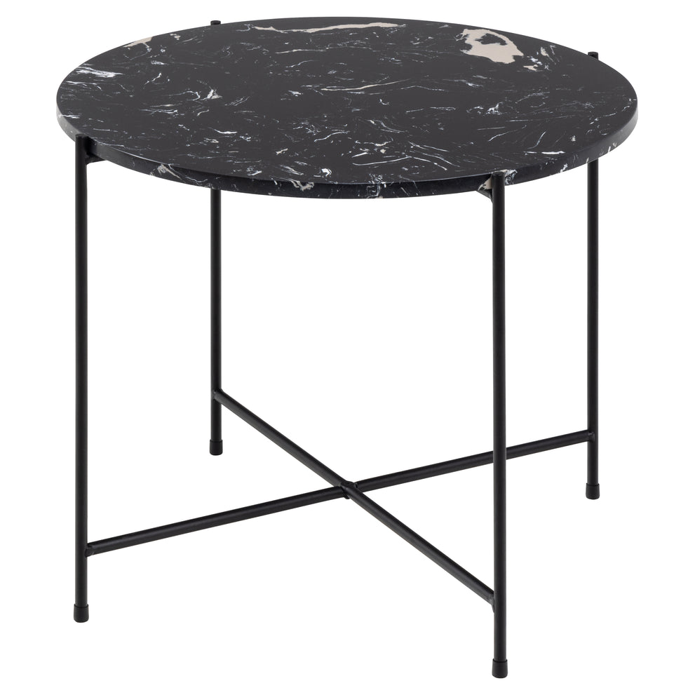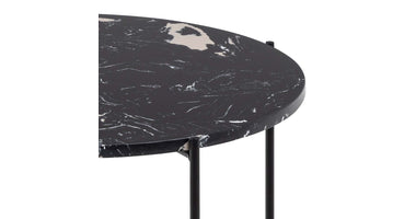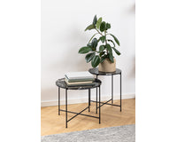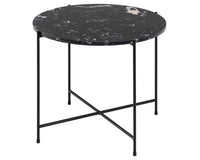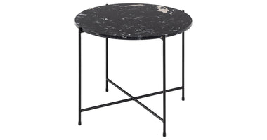 Ze zijn misschien klein, maar bijzettafels spelen nog steeds een grote rol in veel huizen. En deze bijzettafel Hou zal niet gemakkelijk over het hoofd worden gezien. Deze bijzettafel Hou is gemaakt van zwart kunstmarmersteen en is een stijlvolle bankgenoot. Het ronde blad staat op een slanke, ruwe metalen basis met poedercoating en gekruiste details.