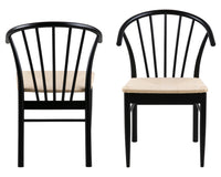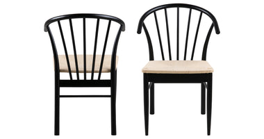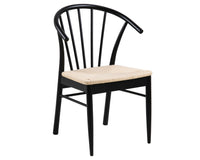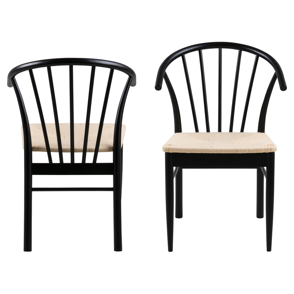Geïnspireerd door de Scandinavische stijl, is deze eikenhouten eetkamerstoel Hornsyld met een zwart gelakte afwerking een natuurlijke schoonheid. De gebogen rugleuning met verticale latten ondersteunt niet alleen je rug, maar geeft de stoel ook een interessant element, terwijl de gevlochten zitting als een contrasterend onderdeel fungeert dat de algehele look in balans brengt.