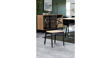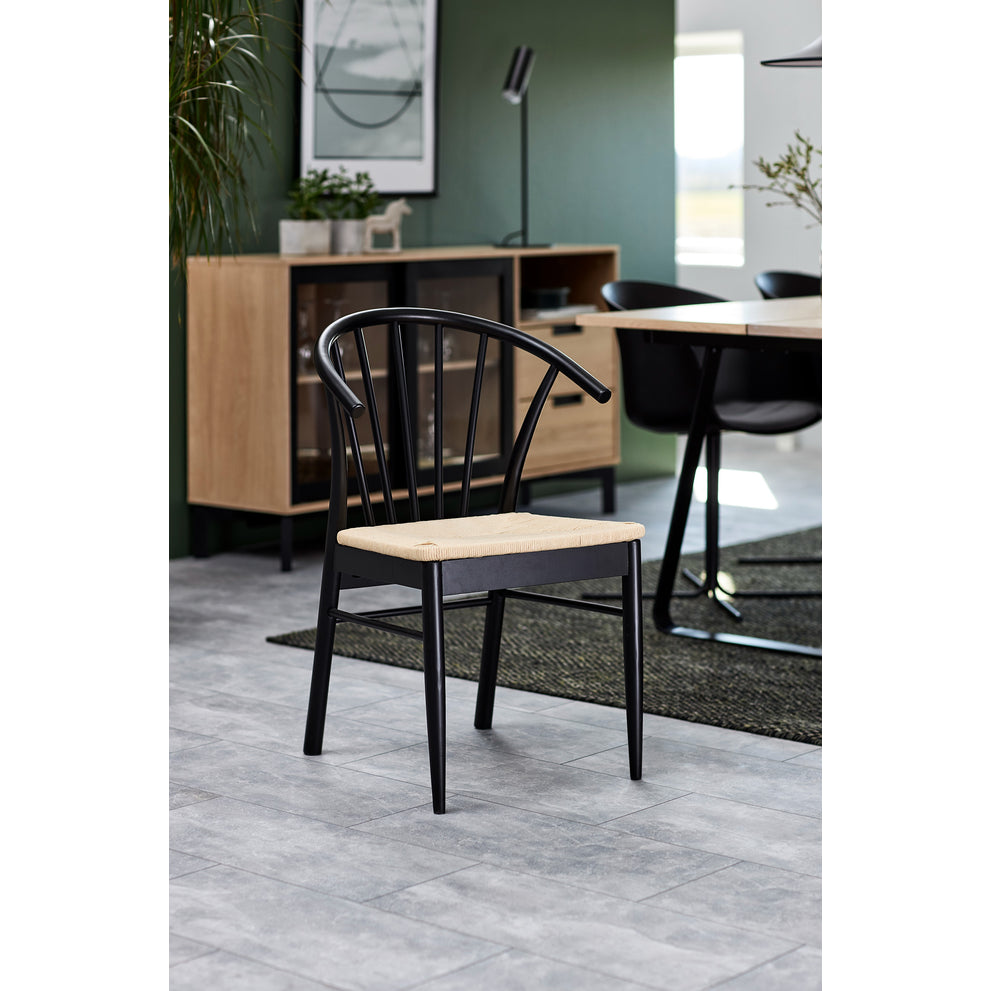 Eetstoel Hornsyld in zwart eikenhout met gevlochten zit