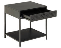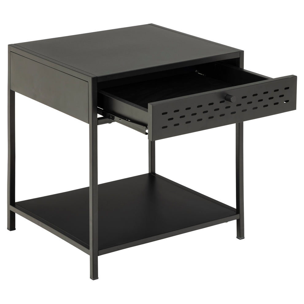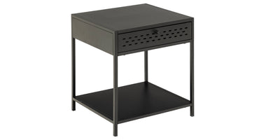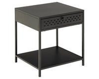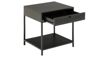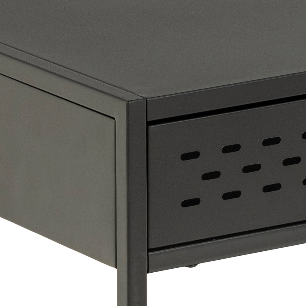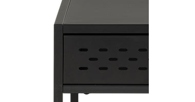 Breng een industriële sfeer in huis met de prachtige meubelen uit de Nexo serie. Het gepoedercoate metaal geeft een moderne uitstraling aan je kamer. De kasten hebben geperforeerde deuren wat de industriële look versterkt. Gebruik het nachtkastje als een coole manier om je ruimte te upgraden en tegelijkertijd geweldige opbergruimte te krijgen voor je benodigdheden.