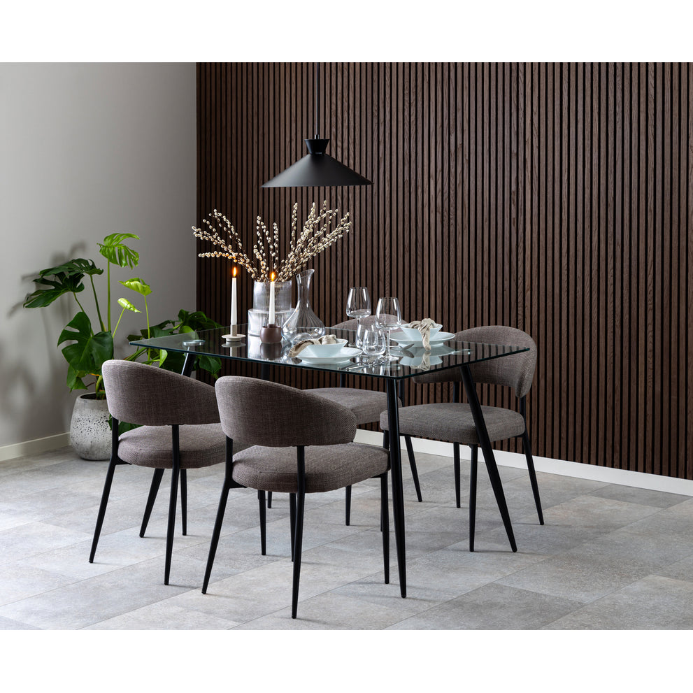 Fleur uw eethoek op met deze elegante beige eetkamerstoel. Het is een goed zittende stoel door de ronde vorm van de rugleuning waardoor je goed steun krijgt. De opvallende ruimte tussen de rugleuning en de zitting geeft een speels effect aan de stoel.