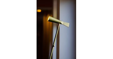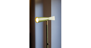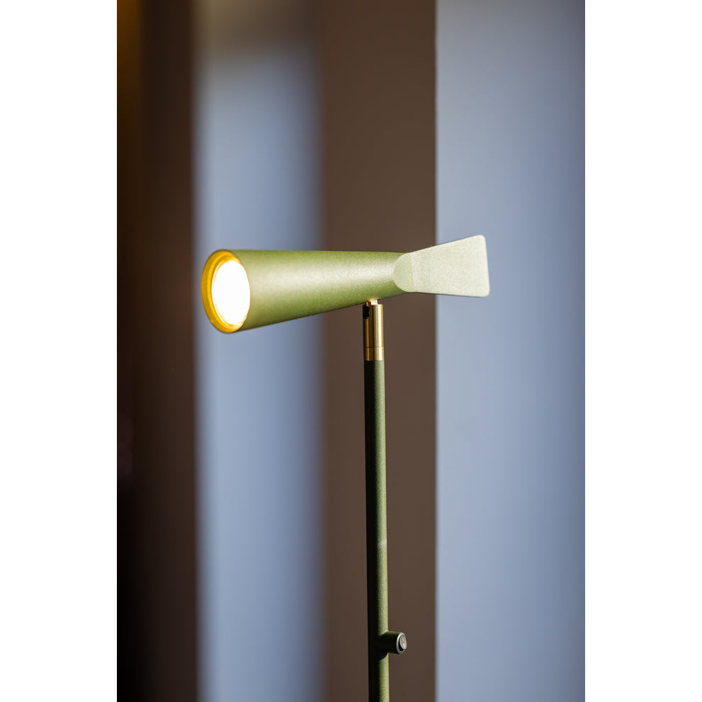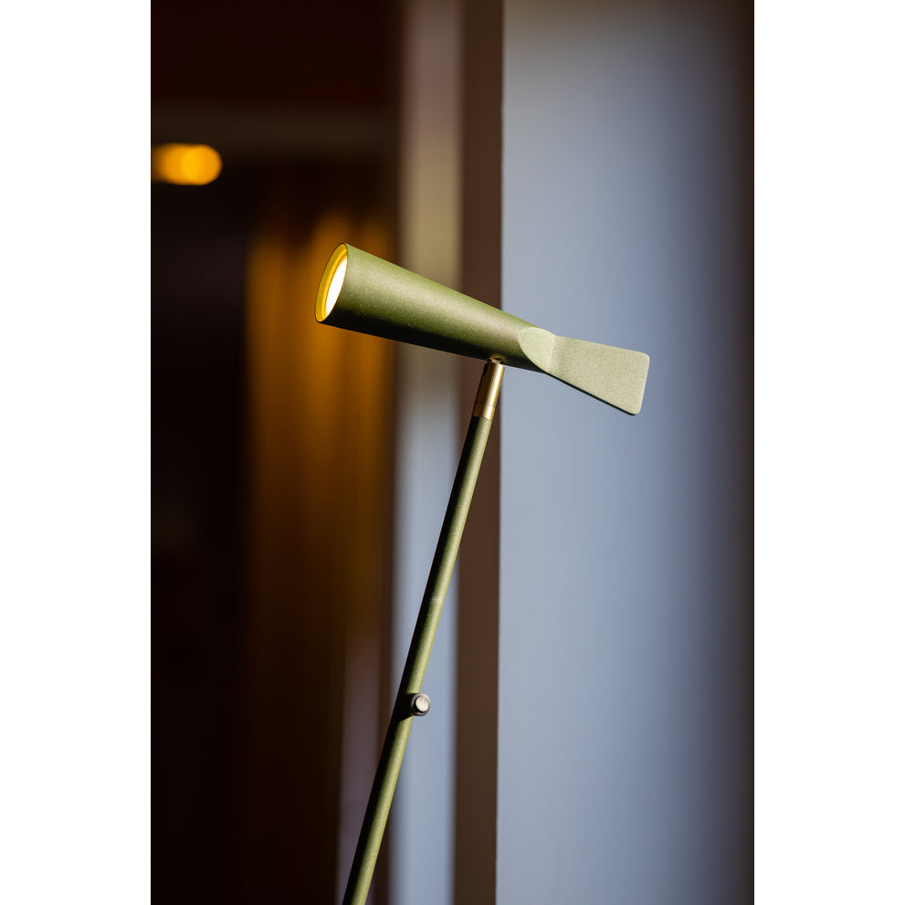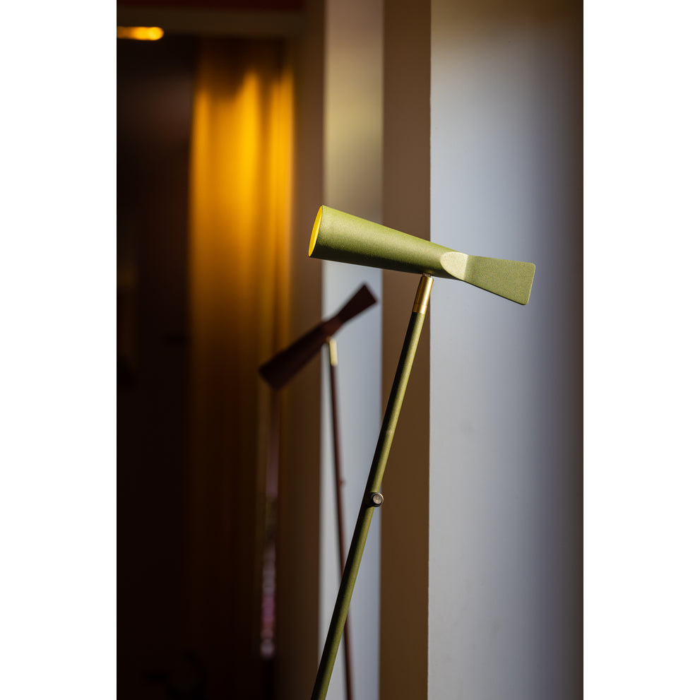 Slanke vloerlamp Pisa van ETH Expo Trading. De lamp heeft een verstelbare kap waardoor je deze goed op je werk of boek kunt richten. Nodig is een (energiezuinige) GU 10 LED lamp welke veel licht geeft. De diameter van de voet is 30 cm waardoor de lamp stevig staat. Bijzonder is dat deze lamp Pisa ook op de vloerplaat te verstellen is d.m.v. een kogelgewricht, waardoor je een schuine stand krijgt. De lamp is in meerdere kleuren te leveren.
