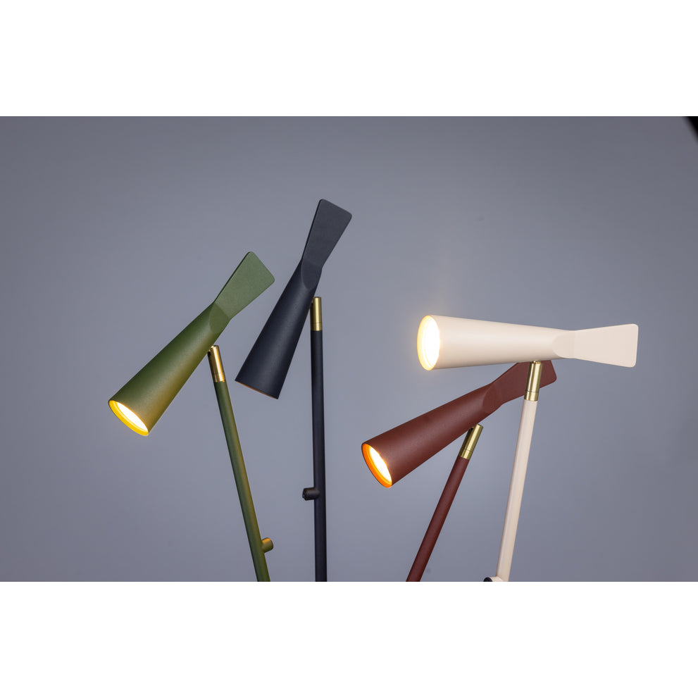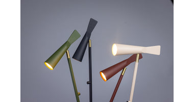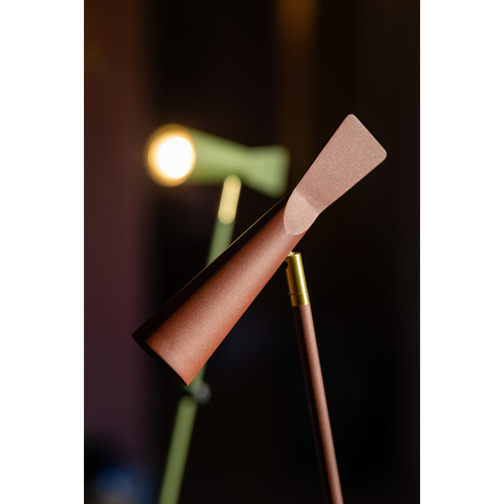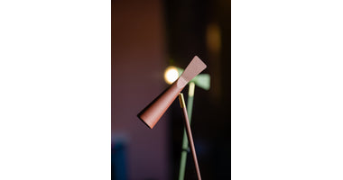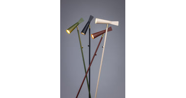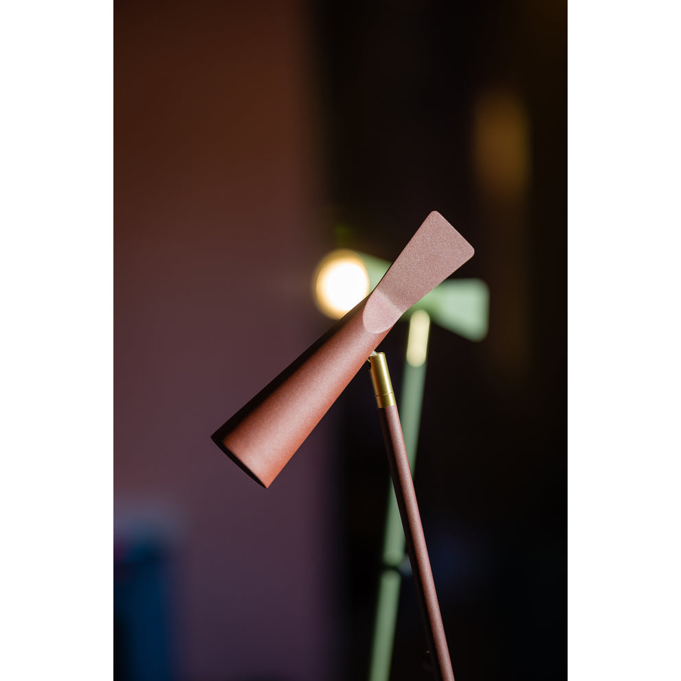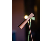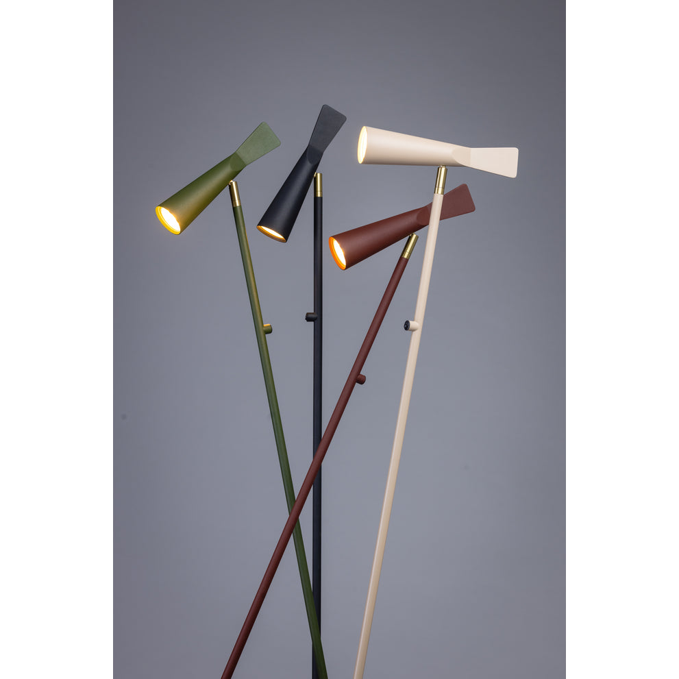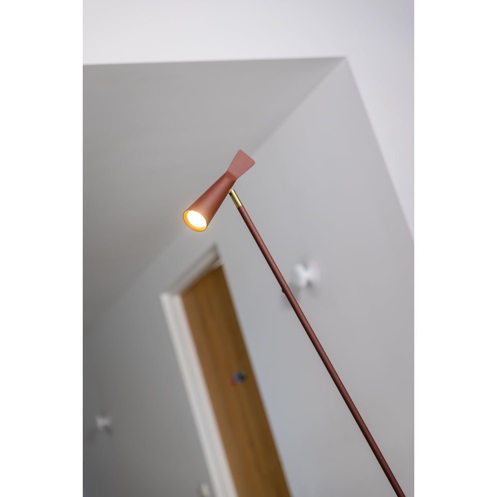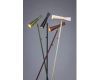 Slanke vloerlamp Pisa van ETH Expo Trading. De lamp heeft een verstelbare kap waardoor je deze goed op je werk of boek kunt richten. Nodig is een (energiezuinige) GU 10 LED lamp welke veel licht geeft. De diameter van de voet is 30 cm waardoor de lamp stevig staat. Bijzonder is dat deze lamp Pisa ook op de vloerplaat te verstellen is d.m.v. een kogelgewricht, waardoor je een schuine stand krijgt. De lamp is in meerdere kleuren te leveren.
