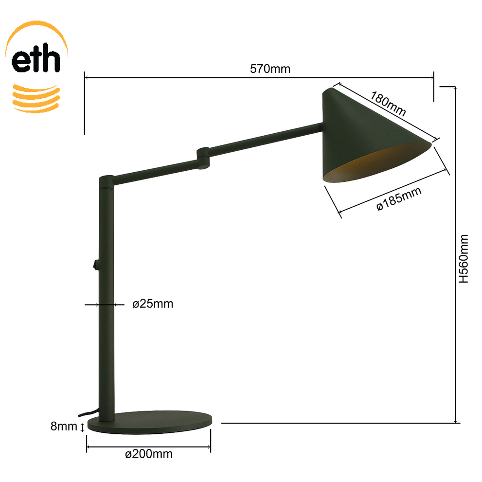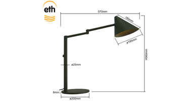 Strak design en slimme functionaliteit komen samen in de Marvis tafellamp van ETH Expo Trading in zwart. Deze moderne tafellamp heeft een minimalistische uitstraling en past perfect binnen industriële, moderne en tijdloze interieurs. Dankzij de slanke vormgeving staat de lamp prachtig op een bureau, dressoir of sidetable.