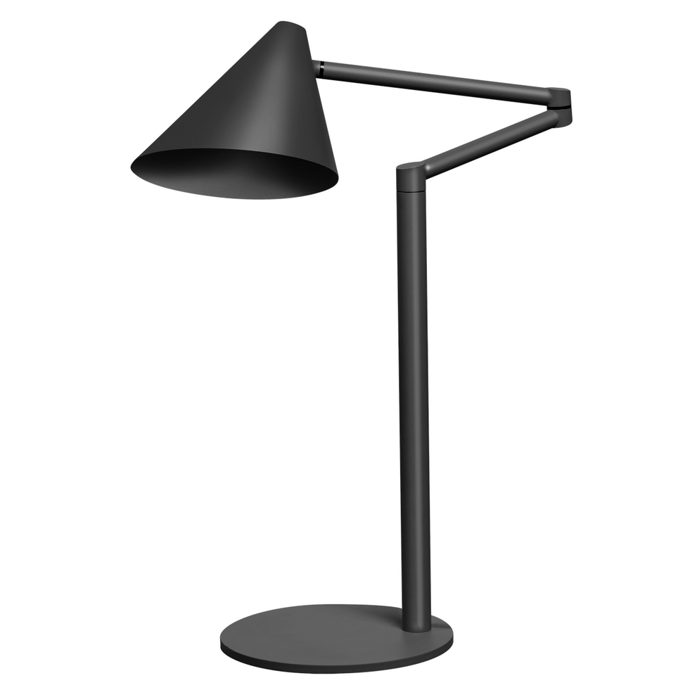 De tafellamp is voorzien van een scharnier tussen de twee stangen, waardoor je de lamp in meerdere richtingen kunt verstellen. Zo richt je het licht precies waar je het nodig hebt, ideaal als werklicht, leeslamp of accentverlichting voor decoratie of kunstobjecten.