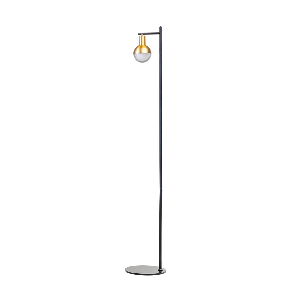 Een stijlvol lichtpunt naast je bank of fauteuil creëer je met de Drop vloerlamp 1-lichts van ETH Expo Trading. De combinatie van een zwart armatuur, gouden accenten en een glazen onderkant zorgt voor een luxe hotel chique uitstraling en een aangename lichtspreiding.