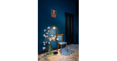 Door het tijdloze design past deze zwarte vloerlamp moeiteloos binnen moderne, industriële en luxe interieurs.