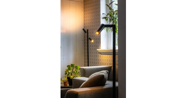 Stijlvolle vloerlamp Miller van de Nederlandse fabrikant ETH Expo Trading. Deze is een echte eyecather in je woonkamer. In het bijzonder door de warme beige zandkleur. Het kapje is draaibaar waardoor je hem in de gewenste richting kunt draaien. De lamp heeft een E27 fitting en wordt standaard zonder de lamp geleverd. Het advies is om de Pucc lamp van dezelfde fabrikant te gebruiken. Dit is een hele kleine dimbare LED lamp. Zie bijgevoegde foto`s van de Pucc lamp. Deze is te bestellen via onze pagina Lichtbronnen.