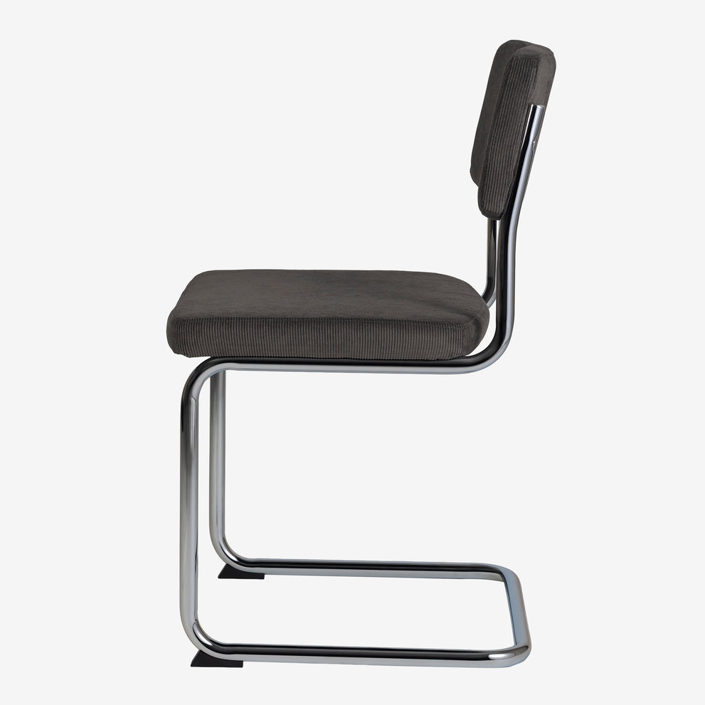 De eetkamerstoel Fontas is de moderne uitvoering van onze bekende ribcord stoel Brovst. Het zit- en rugkussen zijn iets strakker dan bij de Brovst doordat er geen bies om het kussen zit. Ook is het zitkussen iets dunner, wat de strakke uitstraling versterkt. Uiteraard is de stoel Fontas uitgevoerd in de welbekende ribstof. Deze stof is supersterk door de samenstelling van polyester met nylon. Ook deze stoel Fontas heeft de bekende retro Bauhaus-Gispen stijl. Het frame is mooi verchroomd en in combinatie met de ribstof is de stoel zeer goed toe te passen in zowel de woonkamer als in een zakelijke kantoor omgeving.