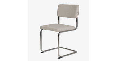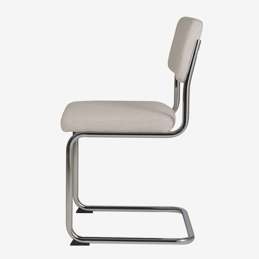 De eetkamerstoel Fontas is de moderne uitvoering van onze bekende ribcord stoel Brovst. Het zit- en rugkussen zijn iets strakker dan bij de Brovst doordat er geen bies om het kussen zit. Ook is het zitkussen iets dunner, wat de strakke uitstraling versterkt. Uiteraard is de stoel Fontas uitgevoerd in de welbekende ribstof. Deze stof is supersterk door de samenstelling van polyester met nylon. Ook deze stoel Fontas heeft de bekende retro Bauhaus-Gispen stijl. Het frame is mooi verchroomd en in combinatie met de ribstof is de stoel zeer goed toe te passen in zowel de woonkamer als in een zakelijke kantoor omgeving.