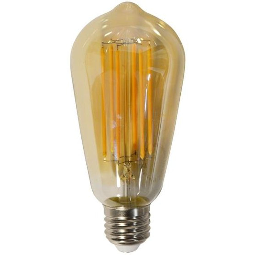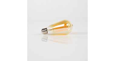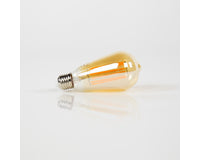 Deze lichtbron LED filament heeft amberkleurig glas en heeft de vorm van een druppel. Aangezien deze lichtbron een lichtkleur van 2100K heeft, geeft hij extra warm licht. De lichtbron is dimbaar.