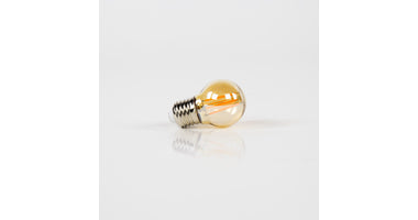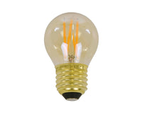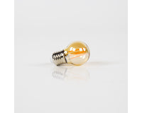 Deze lichtbron LED filament heeft amberkleurig glas en heeft een diameter van 4,5 cm Aangezien deze lichtbron een lichtkleur van 2100K heeft, geeft hij extra warm licht. De lichtbron is dimbaar.