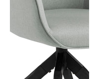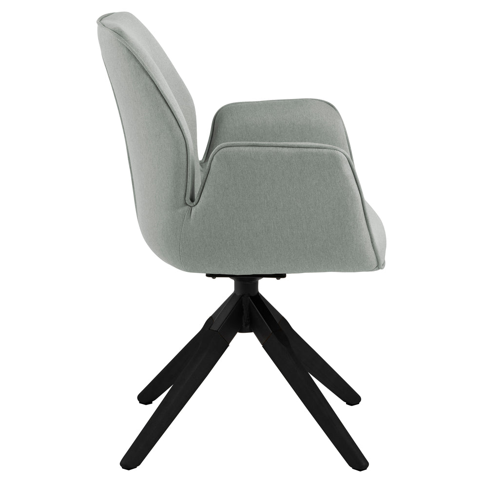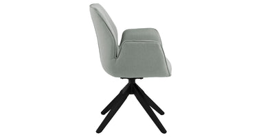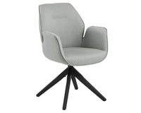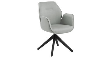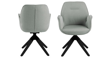 Deze elegante eetkamerstoel met armleuningen is ontworpen met een verfijnd silhouet. De gestoffeerde zitting laat je urenlang comfortabel zitten. Het is een duidelijke keuze tussen stijl en comfort. Dit maakt het een stijlvolle toevoeging aan elke eethoek. De stoel heeft een zogenaamde auto-return functie wat betekent dat de stoel automatisch terug draait naar de originele positie.