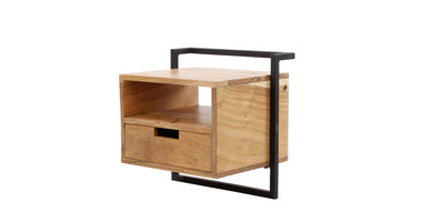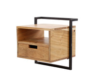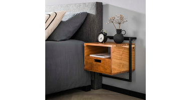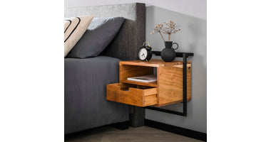 Hangend nachtkastje Bockenem met lade en open vak in acacia hout