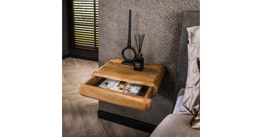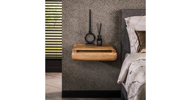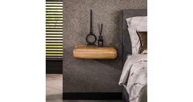 Het hangende nachtkastje Horstel in mango hout is een prachtig meubelstuk dat je slaapkamer of woonkamer een stijlvolle uitstraling geeft. Het nachtkastje heeft een minimalistische en tijdloze look, waardoor het goed past bij een modern interieur. Het is gemaakt van massief mango hout, dat een warme en natuurlijke uitstraling heeft. Het nachtkastje is voorzien van een lade waar je allerlei kleine spulletjes in kunt opbergen. Hierdoor heb je altijd alles bij de hand en alles blijft mooi opgeruimd. Het nachtkastje wordt door middel van een strip met 3 schroeven aan de wand gemonteerd.