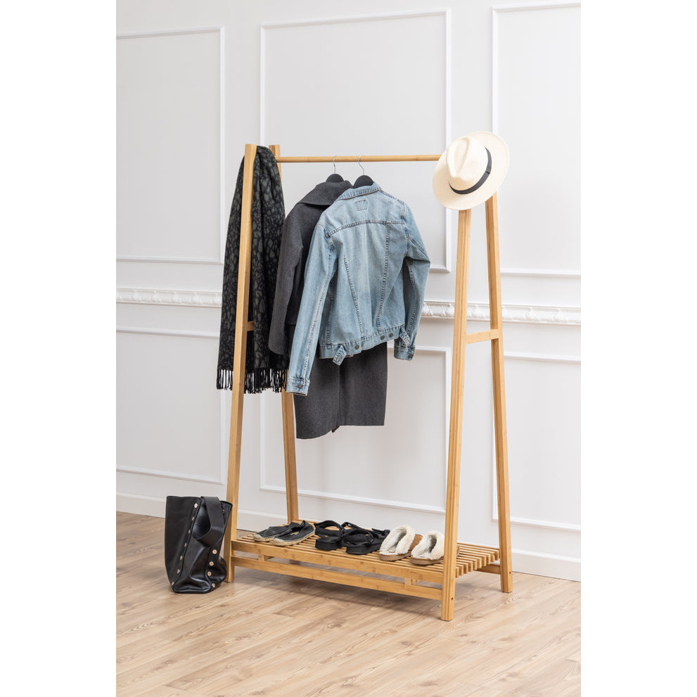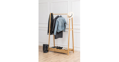 Heb je een plek nodig om je jassen op te hangen? Dit kledingrek Hong is de oplossing. Met een kledingstang is er voldoende ruimte voor jassen en jacks. Het kledingrek is gemaakt van bamboe en de zichtbare nerven geven een warme, natuurlijke glans en geven elke gang een rustige sfeer.