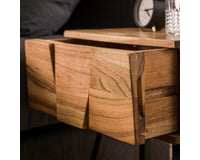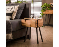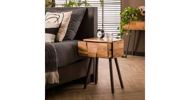 Dit trendy nachtkastje Genthin is uitgevoerd in massief acacia hout met een prachtige bewerking op het front. Het nachtkastje heeft 1 lade. Dit geeft het nachtkastje een stoere, maar chique touch. Een echte eye-catcher! In de serie zijn ook een bijpassende sidetable en TV-meubel leverbaar.