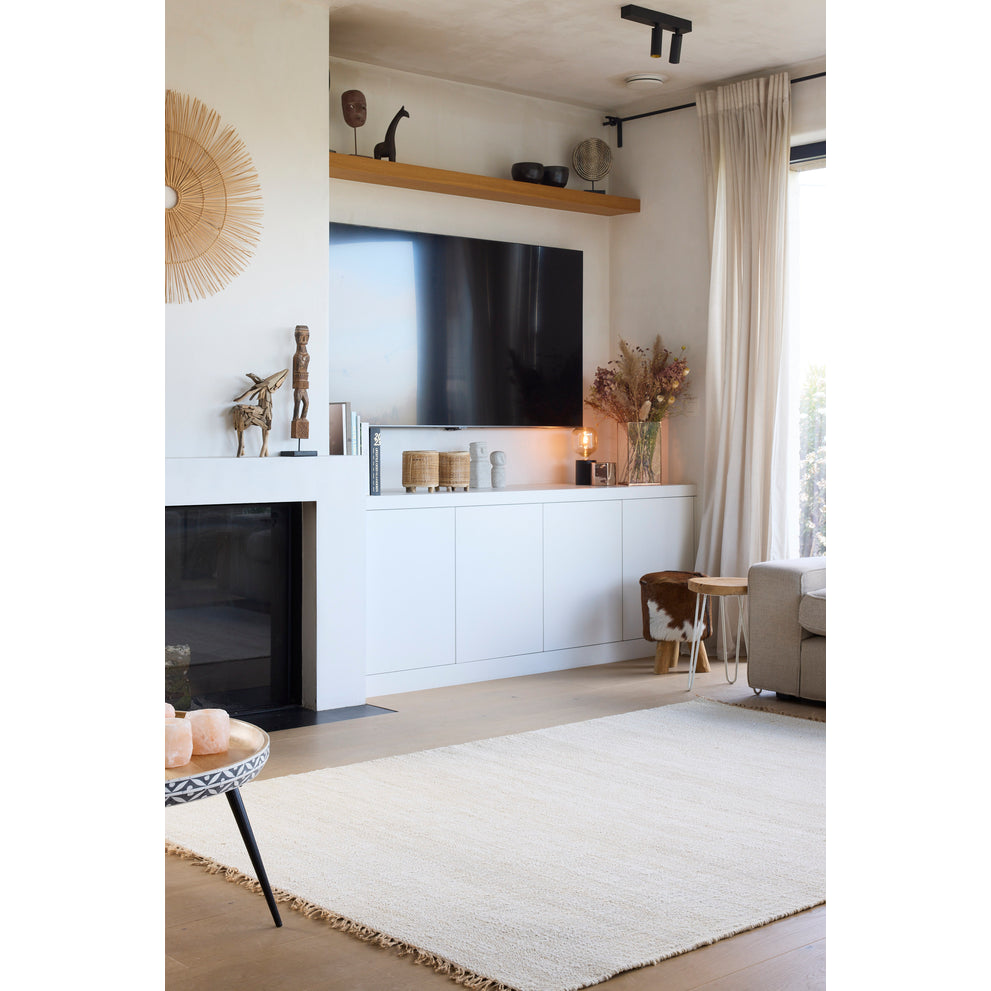 Dit Loook vloerkleed van 170×240 cm in ivoor is een stijlvolle toevoeging aan elk interieur. De lichte kleur geeft een frisse, serene sfeer. Handgeweven van pure hennep en circa 5 mm dik, biedt het een natuurlijke charme met subtiele variaties in structuur. Ideaal voor wie houdt van eenvoud en vakmanschap.