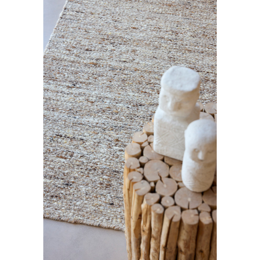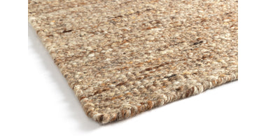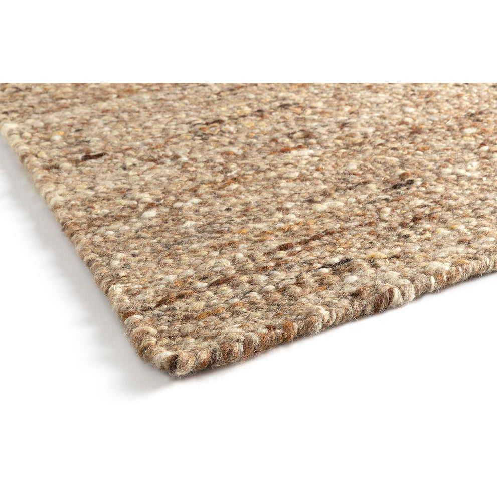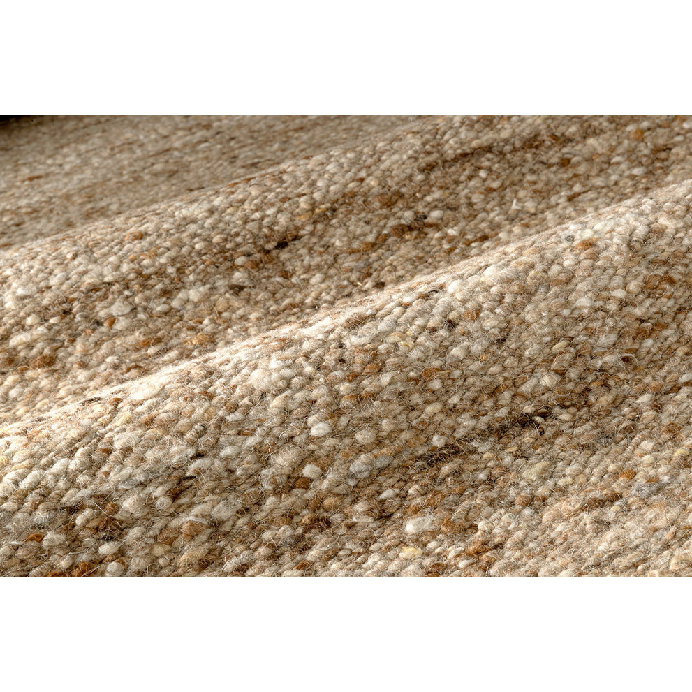 huis. De lichte bruintint en natuurlijke glans van de wol zorgen voor een rijke, uitnodigende sfeer. Elk kleed is handgeweven van 100% wol met een stevige, zachte pool van 8 mm. Perfect voor de woonkamer of eetkamer waar comfort en kwaliteit samenkomen.