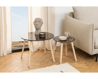 Dat het stoere marmer en hout goed samen gaan bewijst deze tafelserie Holsted wel. Marmer varieert qua kleursamenstelling en structuur per blad wat elke tafel bijzonder maakt De tafels Holsted zijn verkrijgbaar als salontafel en als bijzettafel in bruin en wit marmer.