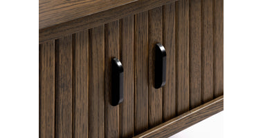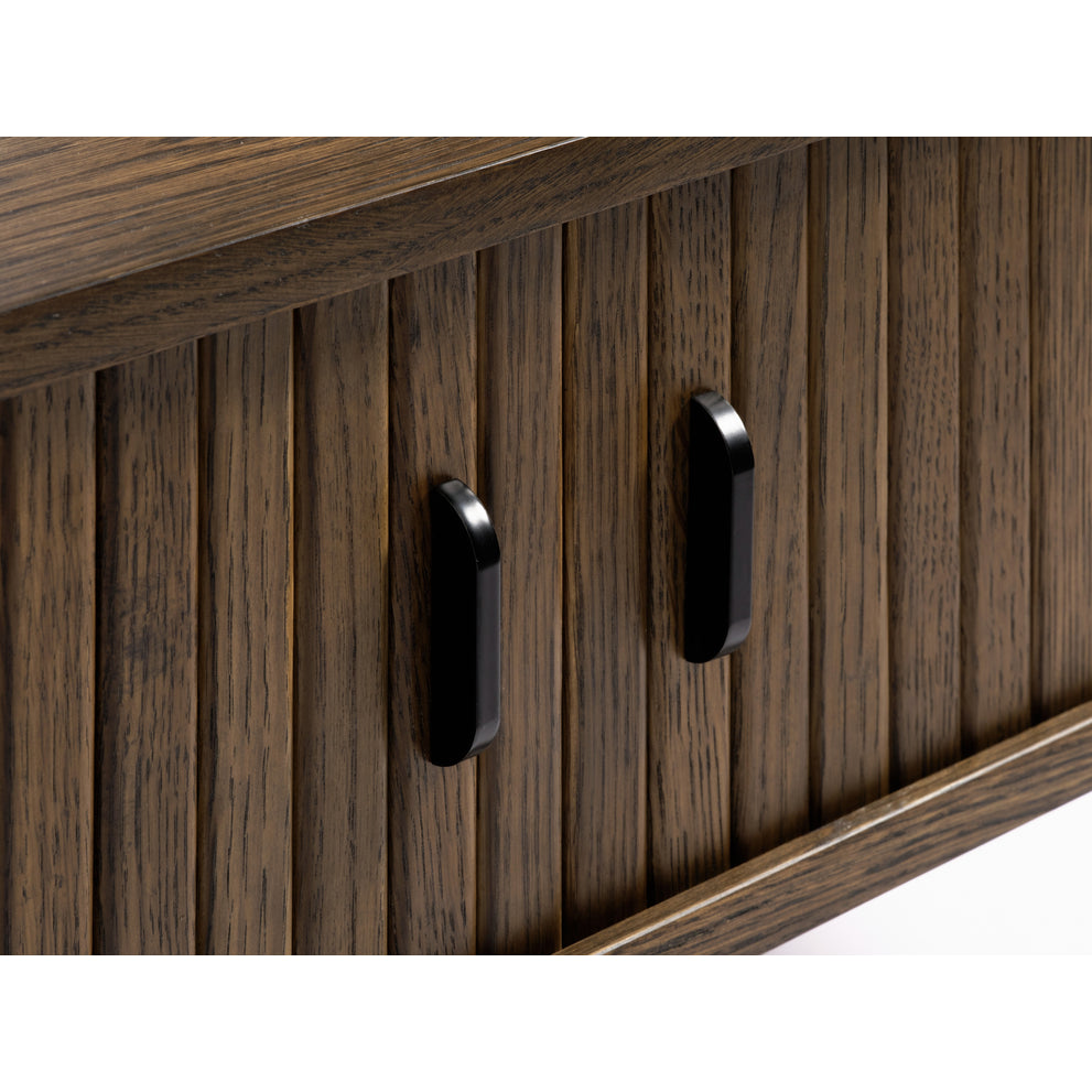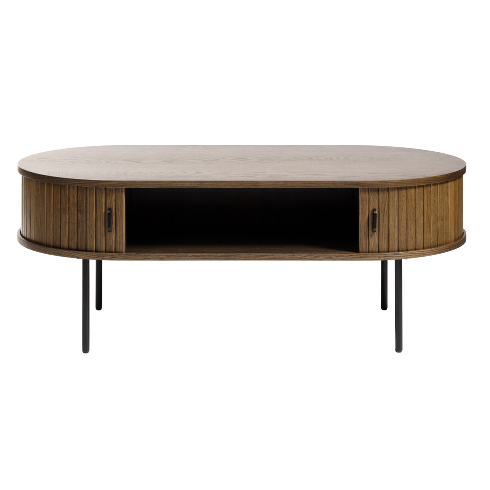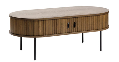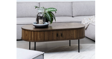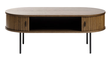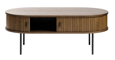De Kolding meubel collectie heeft een Scandinavische look. De ronde hoeken in combinatie met de lamellen schuifdeur zorgen voor een stijlvol meubel. Door de schuifdeuren heb je geen last van in de weg zittende openslaande deuren. Bijpassend in deze serie zijn er naast deze salontafel ook een bijzettafel, eettafel en diverse kasten leverbaar. Ook leverbaar in zwart eiken en bruin gerookt eiken. De Kolding serie meubelen bestaat o.a. uit een tv meubel, een dressoir, een hoge bergkast en diverse eet- en salontafels.