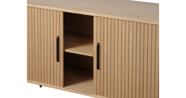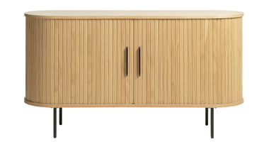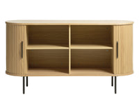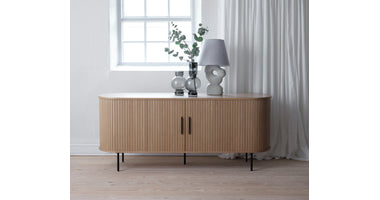 De Kolding meubel collectie heeft een Scandinavische look. De ronde hoeken in combinatie met de lamellen schuifdeur zorgen voor een stijlvol meubel. Door de schuifdeuren heb je geen last van in de weg zittende openslaande deuren. Bijpassend in deze serie zijn er naast de diverse kasten ook een bijzettafel, 2 salontafels en een eettafel leverbaar. Ook leverbaar in zwart eiken en bruin gerookt eiken. De Kolding serie meubelen bestaat o.a. uit een tv meubel, een dressoir, een hoge bergkast en diverse eet- en salontafels.