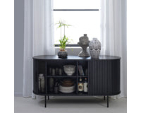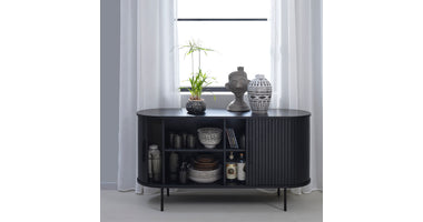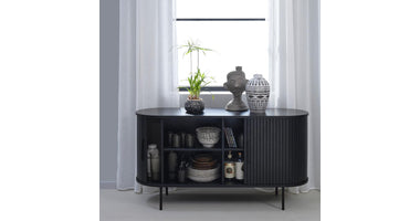 De Kolding meubel collectie heeft een Scandinavische look. De ronde hoeken in combinatie met de lamellen schuifdeur zorgen voor een stijlvol meubel. Door de schuifdeuren heb je geen last van in de weg zittende openslaande deuren. Bijpassend in deze serie zijn er naast de diverse kasten ook een bijzettafel, 2 salontafels en een eettafel leverbaar. Ook leverbaar in naturel eiken en bruin gerookt eiken. De Kolding serie meubelen bestaat o.a. uit een tv meubel, een dressoir, een hoge bergkast en diverse eet- en salontafels.