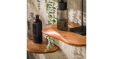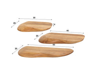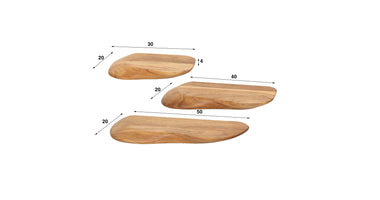 Deze set van 3 wandplanken Hof is gemaakt van acaciahout. De planken zijn afgewerkt met een blanke lak voor een natuurlijke uitstraling. De wandplank wordt door middel van blinde nokken aan de wand gemonteerd. De set bestaat uit 3 planken van 30-40 en 50 cm. De wandplanken zijn ook beschikbaar in 60 - 90 en 120 centimeter.
