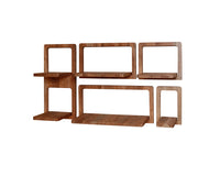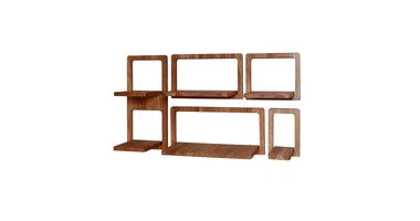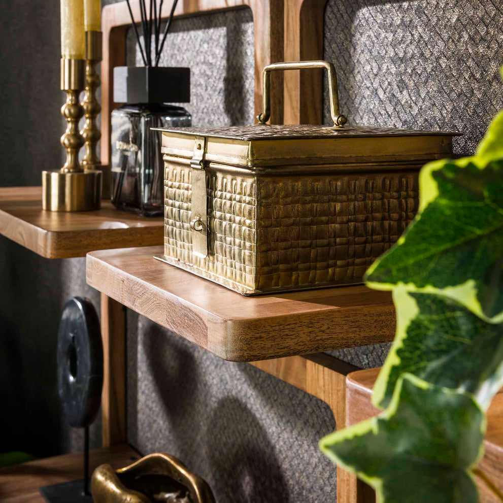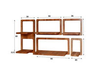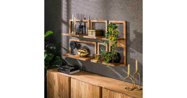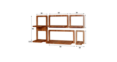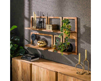 Set van 5 wandschappen (of wandplanken) Hettingen is gemaakt van acacia hout. De schapjes hebben een strakke afwerking met afgeronde hoeken. De schapjes komen als set van 5 en worden allen door middel van 2 oogjes aan de muur gemonteerd. De set kan naar eigen inzicht aan de muur worden gemonteerd. De schappen kunnen namelijk op meerdere manieren een passende rechthoek vormen.