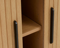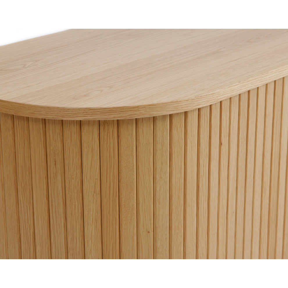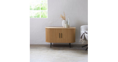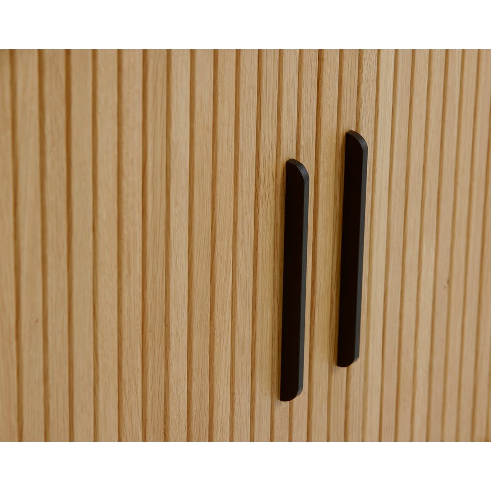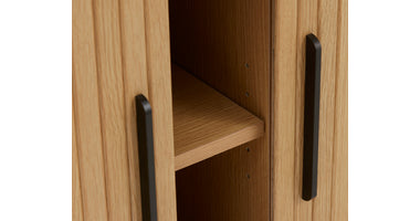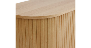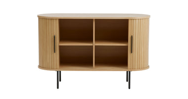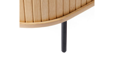 De Kolding meubel collectie heeft een Scandinavische look. De ronde hoeken in combinatie met de lamellen schuifdeur zorgen voor een stijlvol meubel. Door de schuifdeuren heb je geen last van in de weg zittende openslaande deuren. Bijpassend in deze serie zijn er naast de diverse kasten ook een bijzettafel, 2 salontafels en een eettafel leverbaar. Ook leverbaar in zwart eiken, bruin gerookt eiken en wit gekleurd eiken. De Kolding serie meubelen bestaat o.a. uit een tv meubel, een dressoir, een hoge bergkast en diverse eet- en salontafels.