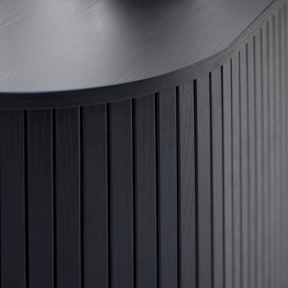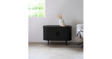 De Kolding meubel collectie heeft een Scandinavische look. De ronde hoeken in combinatie met de lamellen schuifdeur zorgen voor een stijlvol meubel. Door de schuifdeuren heb je geen last van in de weg zittende openslaande deuren. Bijpassend in deze serie zijn er naast de diverse kasten ook een bijzettafel, 2 salontafels en een eettafel leverbaar. Ook leverbaar in zwart eiken, bruin gerookt eiken en wit gekleurd eiken. De Kolding serie meubelen bestaat o.a. uit een tv meubel, een dressoir, een hoge bergkast en diverse eet- en salontafels.