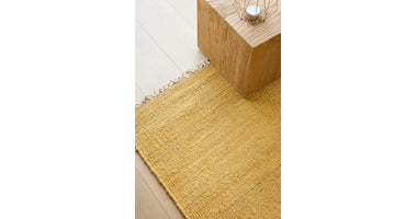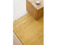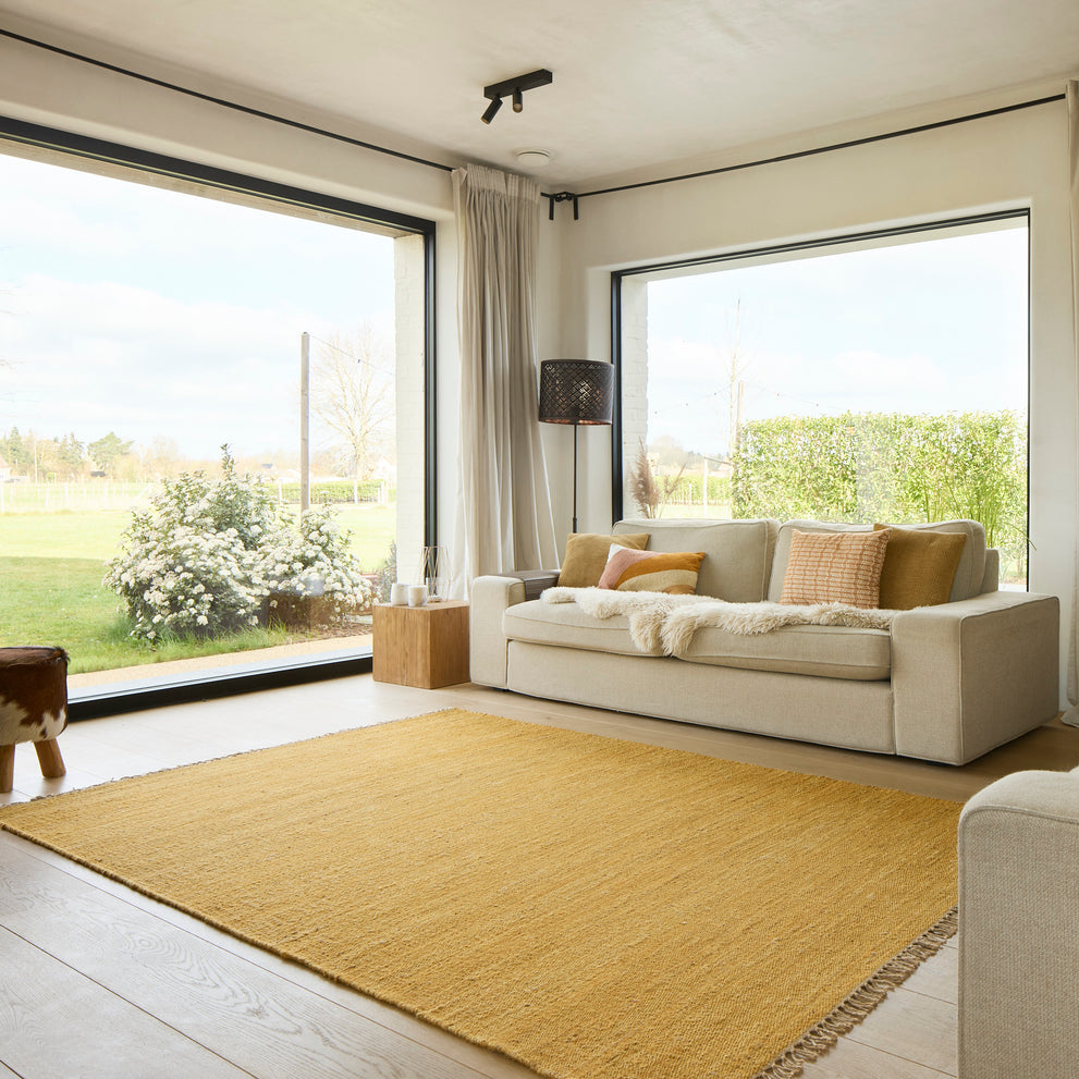 Het Loook vloerkleed van 170×240 cm in curry geel is een sfeervolle blikvanger. Het is met de hand geweven uit 100% hennep en heeft een natuurlijke, robuuste uitstraling. Dankzij de dikte van circa 5 mm ligt het kleed mooi vlak. De warme tint brengt gezelligheid in elk interieur, van modern tot landelijk. Door het ambachtelijke weefproces is elk exemplaar uniek in kleur en structuur.
