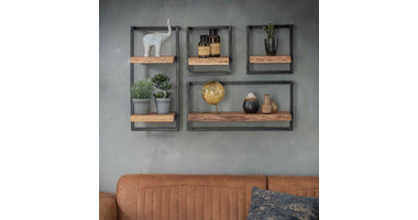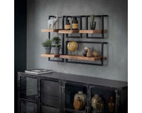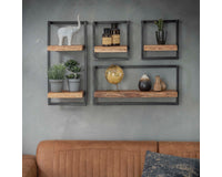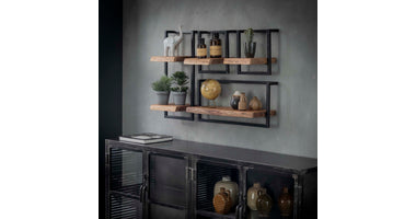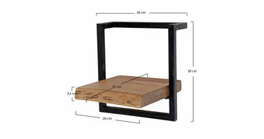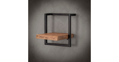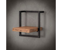 Deze wandplank Barby bestaat uit een houten acacia plankje (in diverse afmetingen) en is bevestigd aan een vintage stalen frame. De plank heeft aan het uiteinden een stoere afgeschuurde boomstamvorm. Deze wandplank is een onderdeel van de complete serie wandplanken, waardoor er verschillende decoratieve wanden te maken zijn. Zie voorbeelden.  De wandplank is middels twee bevestigingsogen eenvoudig aan de wand te monteren.