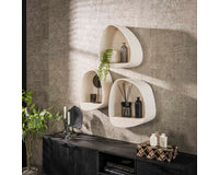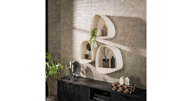 Deze hippe druppelvormige wandschap Homberg is uitgevoerd in marmer composiet. Marmercomposiet is een mix van kunstmatige hars, kleurstoffen en fijn gemalen marmer.  Op het schap zit een hele mooie bewerking welke een unieke uitstraling geeft. Het wandschapje is ideaal te combineren met 1 of 2 andere schapjes uit deze reeks, Het schapje wordt door middel van een strip waar het schapje opgehangen wordt aan de wand gemonteerd.