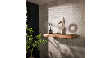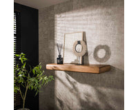 Deze trendy wandplank Horstel is uitgevoerd in duurzaam mangohout met een zandkleurige finish. De wandplank wordt door middel van een lat met 2 houten blokjes aan de wand gemonteerd (zie afbeelding). Deze constructie zorgt ervoor dat wandplank strak tegen de wand aan hangt. Deze wandplank is 118 cm en heeft ook nog een grotere uitvoering van 170 cm. De wandplank is op speelse wijze heel leuk te combineren met de grotere wandplank.