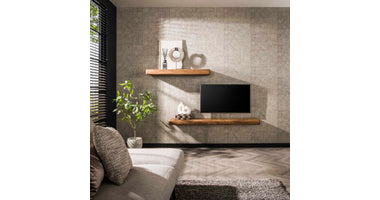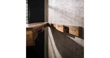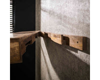 Deze trendy wandplank Horstel is uitgevoerd in duurzaam mangohout met een zandkleurige finish. De wandplank wordt door middel van een lat met 3 houten blokjes aan de wand gemonteerd (zie afbeelding). Deze constructie zorgt ervoor dat wandplank strak tegen de wand aan hangt. Deze wandplank is 170 cm en heeft ook nog een kleinere uitvoering van 118 cm. De wandplank is op speelse wijze heel leuk te combineren met een de kleinere wandplank.